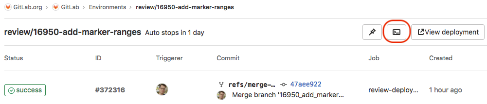 If you deploy to your environments with the help of a deployment service (for example, the Kubernetes integration), GitLab can open a terminal session to your environment. You can then debug issues without leaving your web browser.