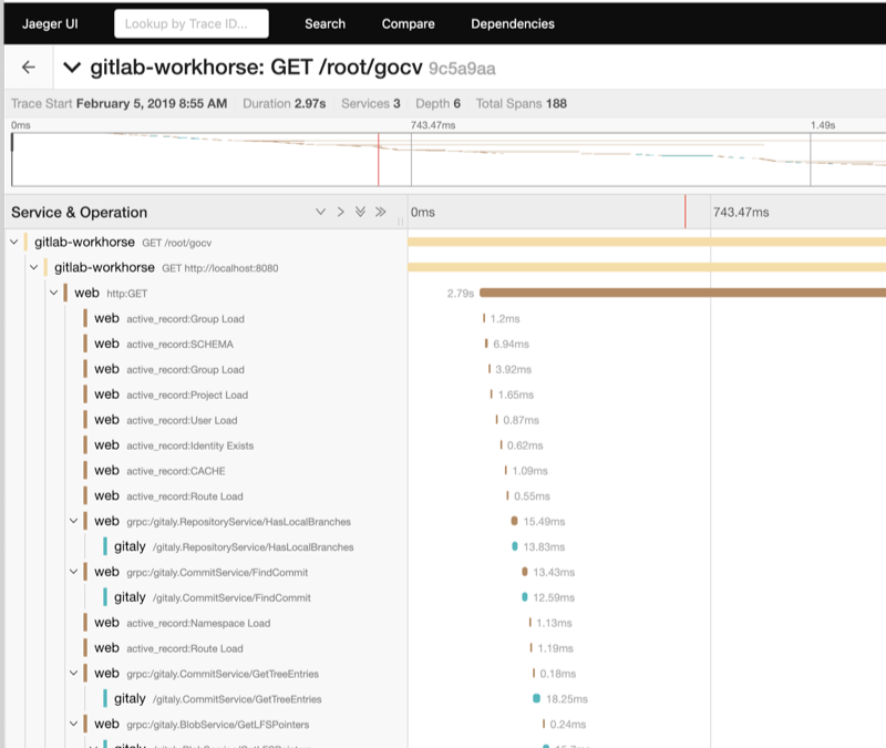 supports distributed tracing with Jaeger out-of-the-box. GDK automatically adds